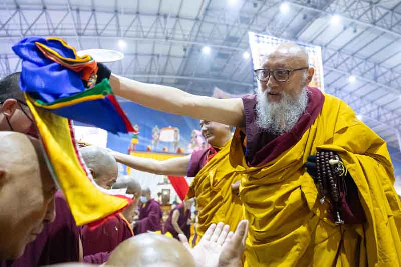 On December 25, 2025, under instructions from the 17th Gyalwang Karmapa, His Eminence Goshir Gyaltsab Rinpoche bestowed the empowerment of Vairocana Abhisaṃbodhi [The Complete Awakening of Vairocana]. The empowerment was attended by thousands of practitioners, both monastic and lay, from India, Nepal, Bhutan and further afield. The empowerment consists of two parts - the preliminary and the main sections. Since the preliminary section had been completed the previous day, today the main empowerment was completed in its entirety.