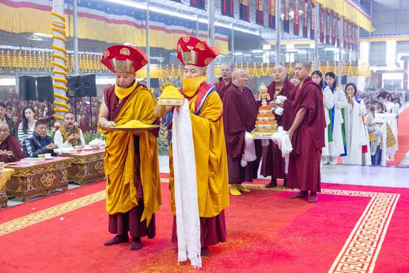 In conclusion, in gratitude for the great kindness demonstrated by Rinpoche, he received an elaborate body-speech-mind mandala offering from the Kagyu Monlam Organisation and sponsors.