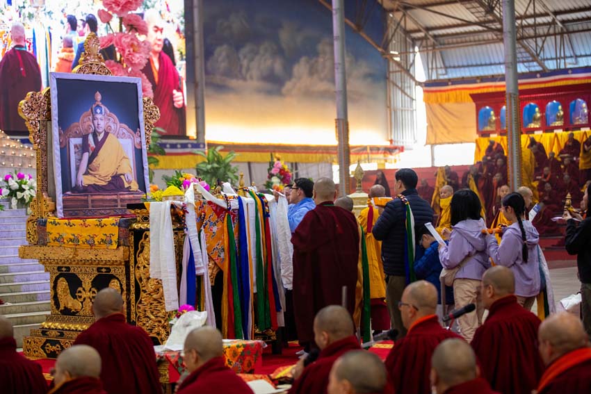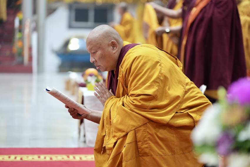 ཕྱི་ལོ་ ༢༠༢༥ ཟླ་བ་ ༡༢ ཚེས་ ༣༠ ཉིན། ཕྱག་ཚོད་ ༦ པའི་ཐོག་རྒྱུན་ལྡན་བཞིན་སྨོན་ལམ་ཆེན་མོར་ཆེད་ཕེབས་མཛད་པའི་སྐྱབས་གནས་དགེ་འདུན་འདུས་པ་རྒྱ་མཚོ་སྤྱི་དང་། ཕྱོགས་མཐའ་ཁག་ནས་ཕེབས་པའི་དད་ལྡན་མི་དམངས་ཚོགས་བཅར་བ་ཡོངས་བཀའ་བརྒྱུད་སྨོན་ལམ་ཆེན་མོའི་ཆོས་རར་འདུ་འཛོམས་གྲུབ་པ་དང་། ཟུར་མང་སྙན་བརྒྱུད་ཀྱི་བསྟན་པའི་བདག་པོ་ཆེན་པོ་༧སྐྱབས་རྗེ་ཟུར་མང་གར་དབང་རིན་པོ་ཆེ་མཆོག་ནས་འདུས་པ་སེར་སྐྱ་མི་དམངས་ཡོངས་ལ་ཐེག་པ་ཆེན་པོའི་གསོ་སྦྱོང་གི་སྡོམ་པ་སྩལ་མཛད། དེ་ནས་ཉིན་རེའི་ཞལ་འདོན་གྱི་རིམ་པ་རྣམས་སྔ་ནས་སྨོན་ལམ་དུས་ཚོད་རེའུ་མིག་ཏུ་བཀོད་པ་ལྟར། ཚོགས་བཅར་བ་འདུས་པ་ཀུན་ནས་ཐོག་མར་ལེགས་སྦྱར་གྱི་ཞལ་འདོན་རྣམས་གསུངས་པའི་སྒོ་ནས་སྨོན་ལམ་ཉིན་བཞི་པའི་ཞལ་འདོན་གྱི་རིམ་པ་ལ་ལེགས་པར་འཇུག །