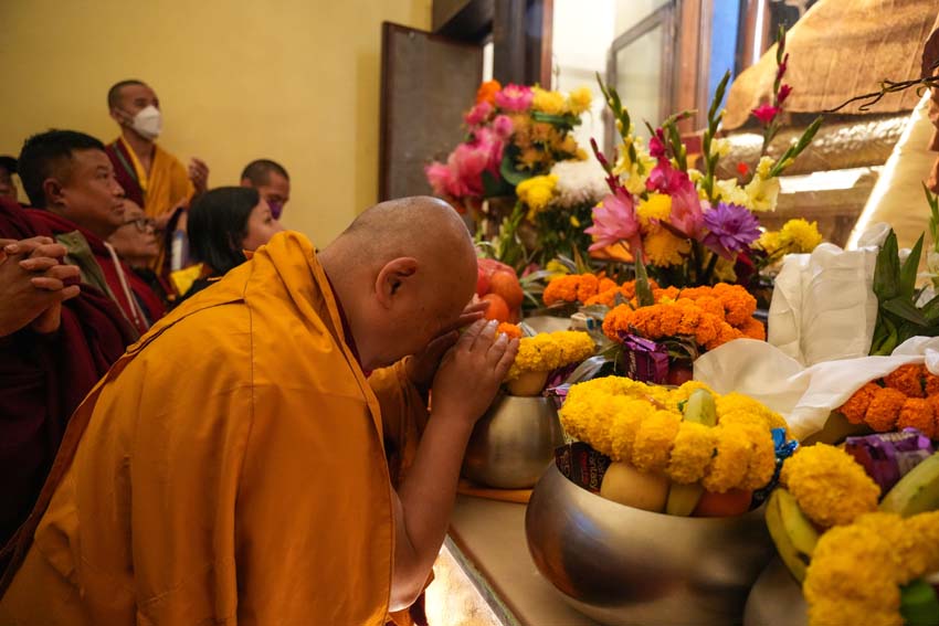 "ད་རེས་བཀའ་བརྒྱུད་སྨོན་ལམ་ཆེན་མོ་ཐེངས་བཞི་བཅུ་པའི་ཚོགས་མགོན་ལ་ཕེབས་པའི་༧སྐྱབས་མགོན་༧རྒྱལ་བའི་རྒྱལ་ཚབ་དྲུང་གོ་ཤྲི་ཆེན་པོ་མཆོག་དང་། ༧སྐྱབས་རྗེ་ཟུར་མང་གར་དབང་རིན་པོ་ཆེ་དབུས་པའི་བླ་སྤྲུལ་དགེ་བའི་བཤེས་གཉེན་རྣམ་པ་ཚོ་དང་། ཕྱོགས་བཅུའི་དགེ་འདུན་གྱི་སྡེ་བཙུན་པ་དང་བཙུན་མ་རྣམ་པ་ཚོ། ཕྱོགས་མཐའ་ཁག་ནས་ཕེབས་པའི་དད་ལྡན་མི་དམངས་བོད་རིགས་སྤུན་ཟླ་དང་། ཧི་མ་ལཱ་ཡ་ཡི་སྤུན་ཟླ་རྣམ་པ་ཚོ་གཙོ་བོར་གྱུར་པའི་ཚང་མ་ལ་བཀྲ་ཤིས་པའི་འཚམས་འདྲི་ཞུ་ཡ་ཡིན།